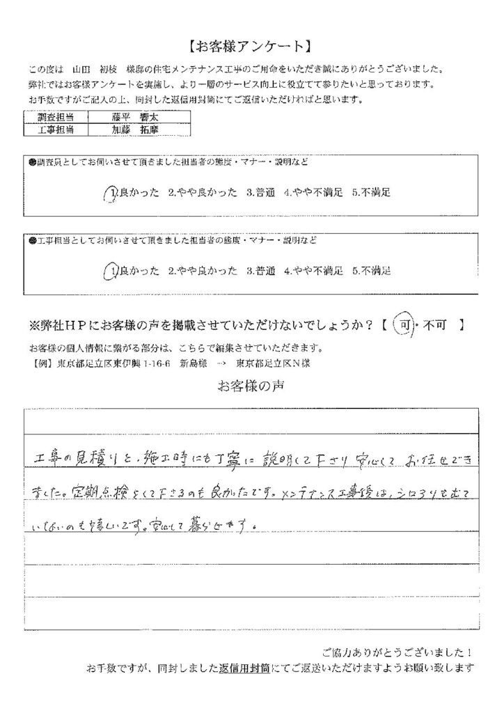 メンテナンス工事後はシロアリも出ていないのも嬉しいです。安心して暮らせます。 -