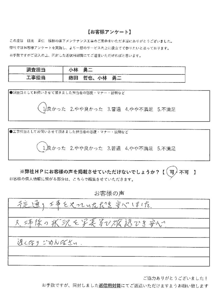 また施工写真も同封していただき作業箇所もわかり有難うございました。 -