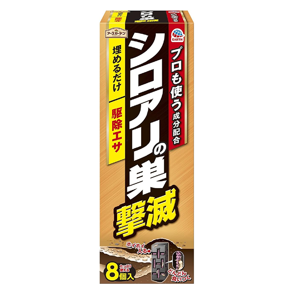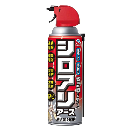 シロアリ専用の製品もあり、フマキラーの「シロアリ ジェットプロ」や、アース製薬の「アリの巣コロリ シロアリアース」などが代表的です。